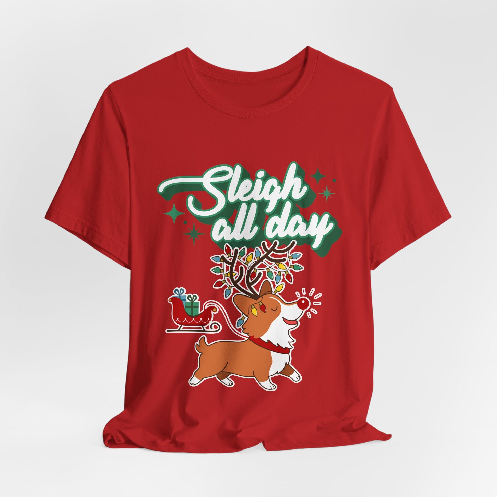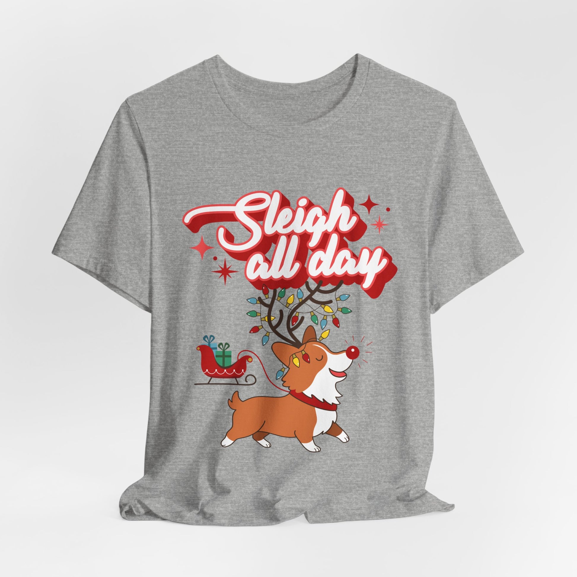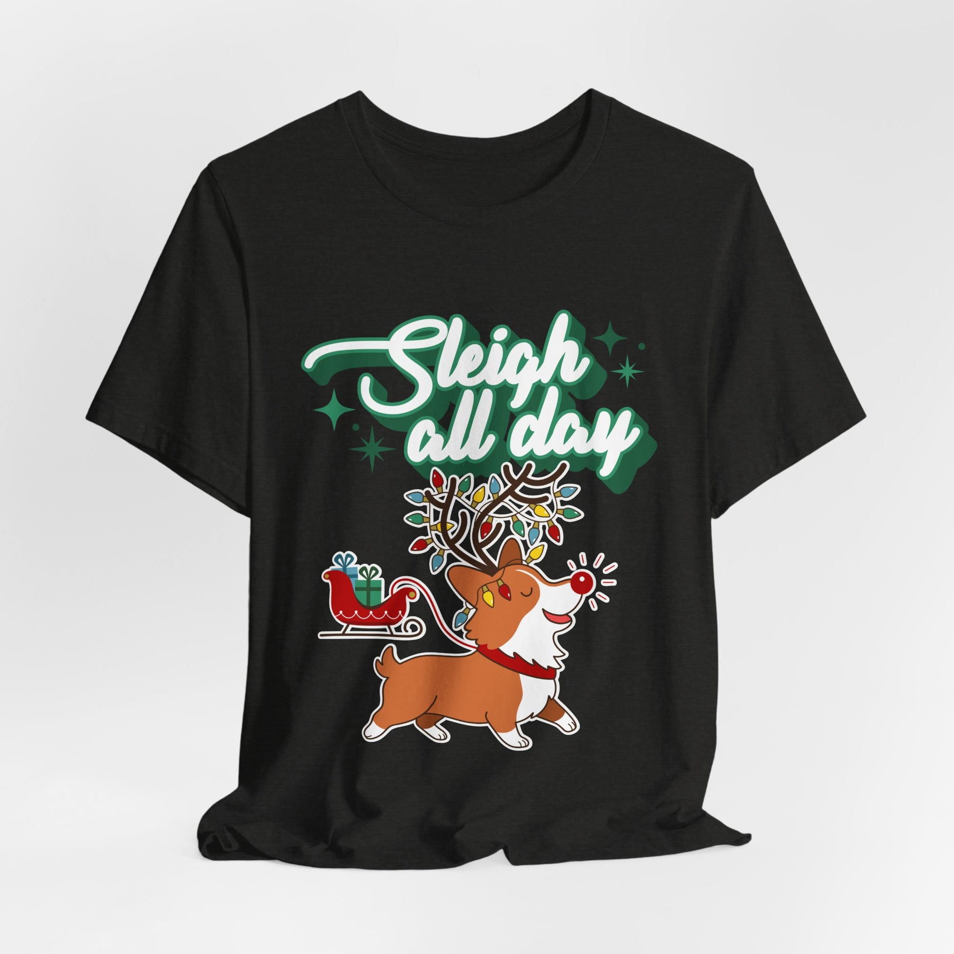 "Sleigh All Day " Corgi Christmas T-Shirt