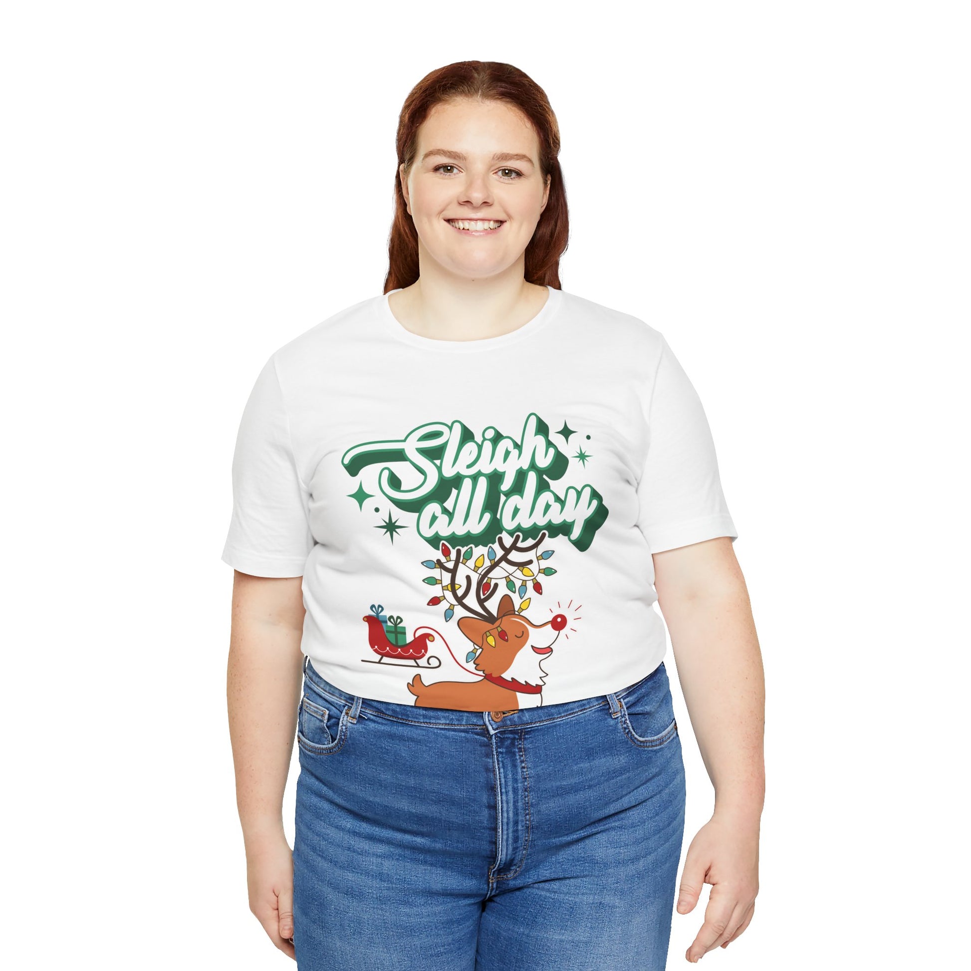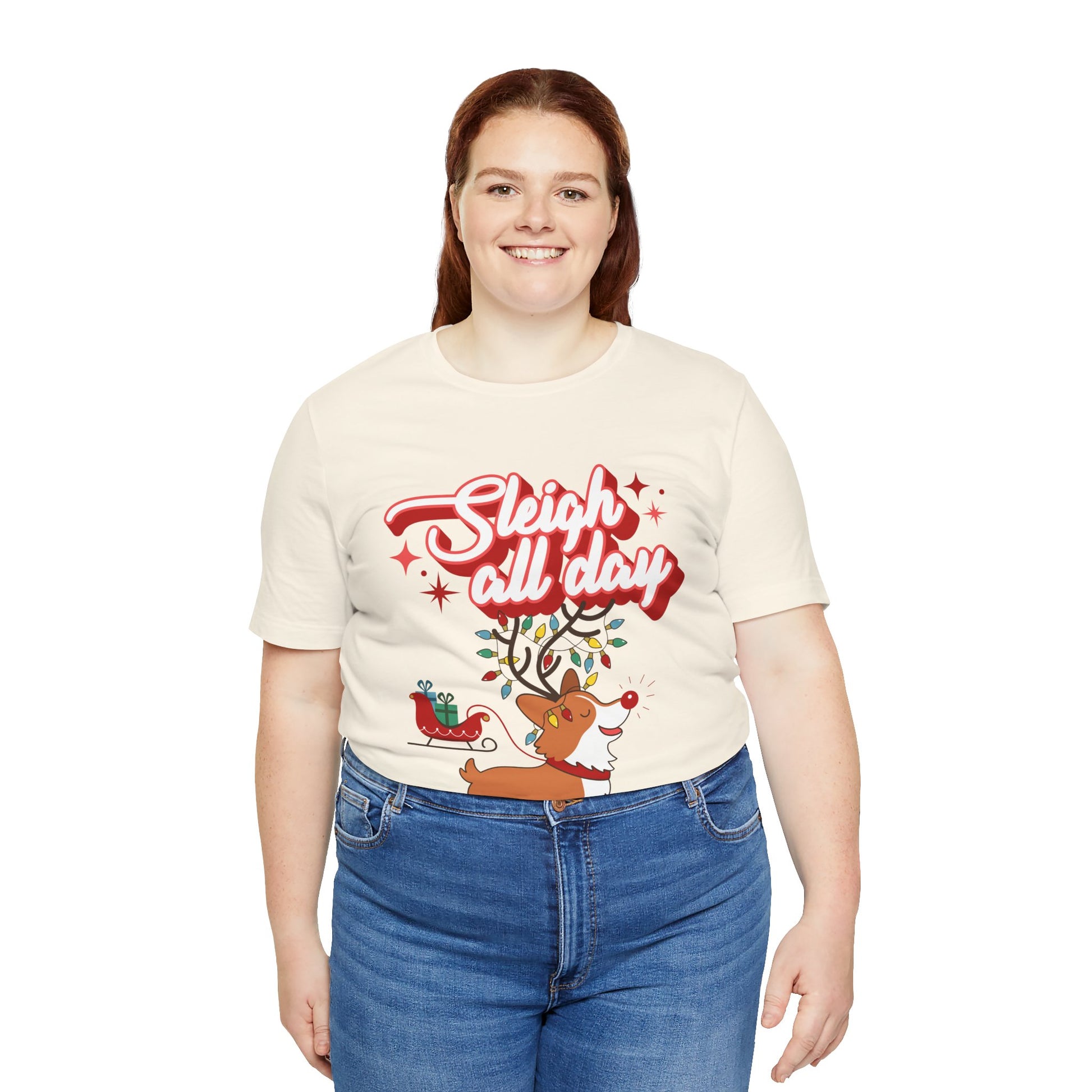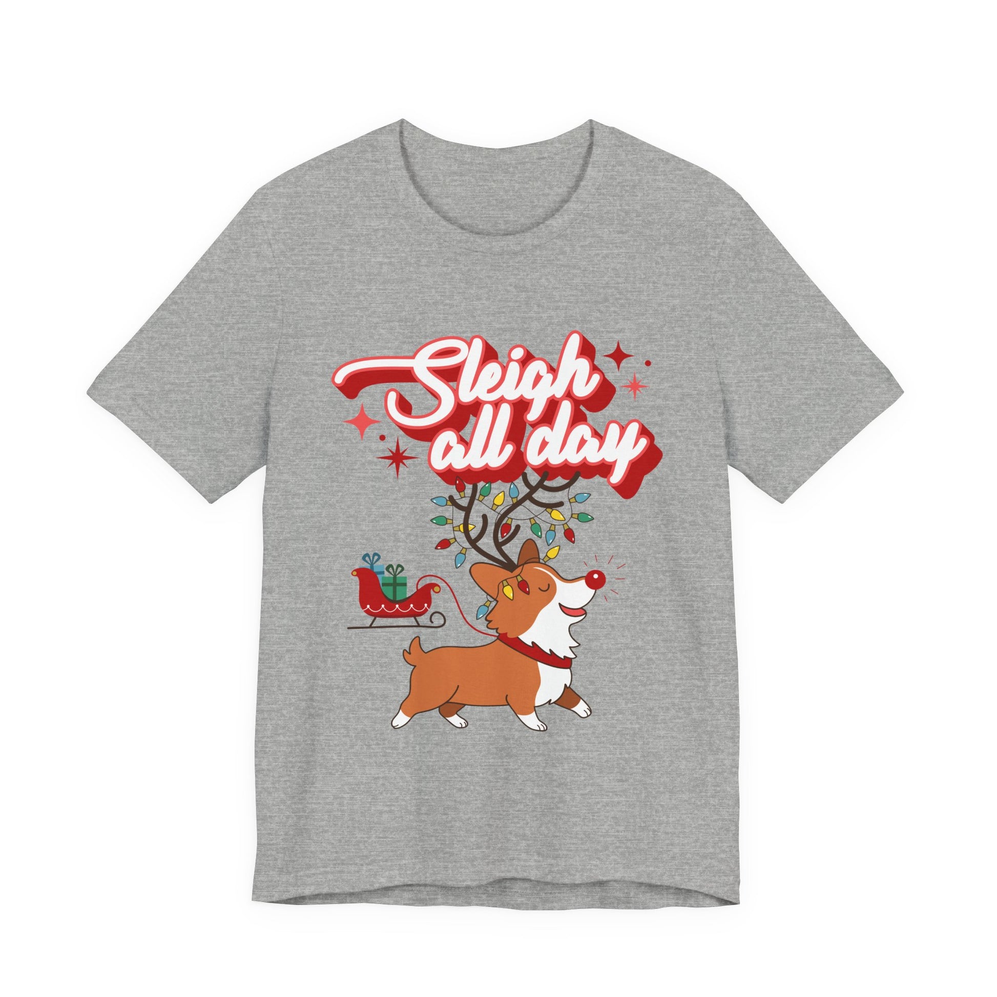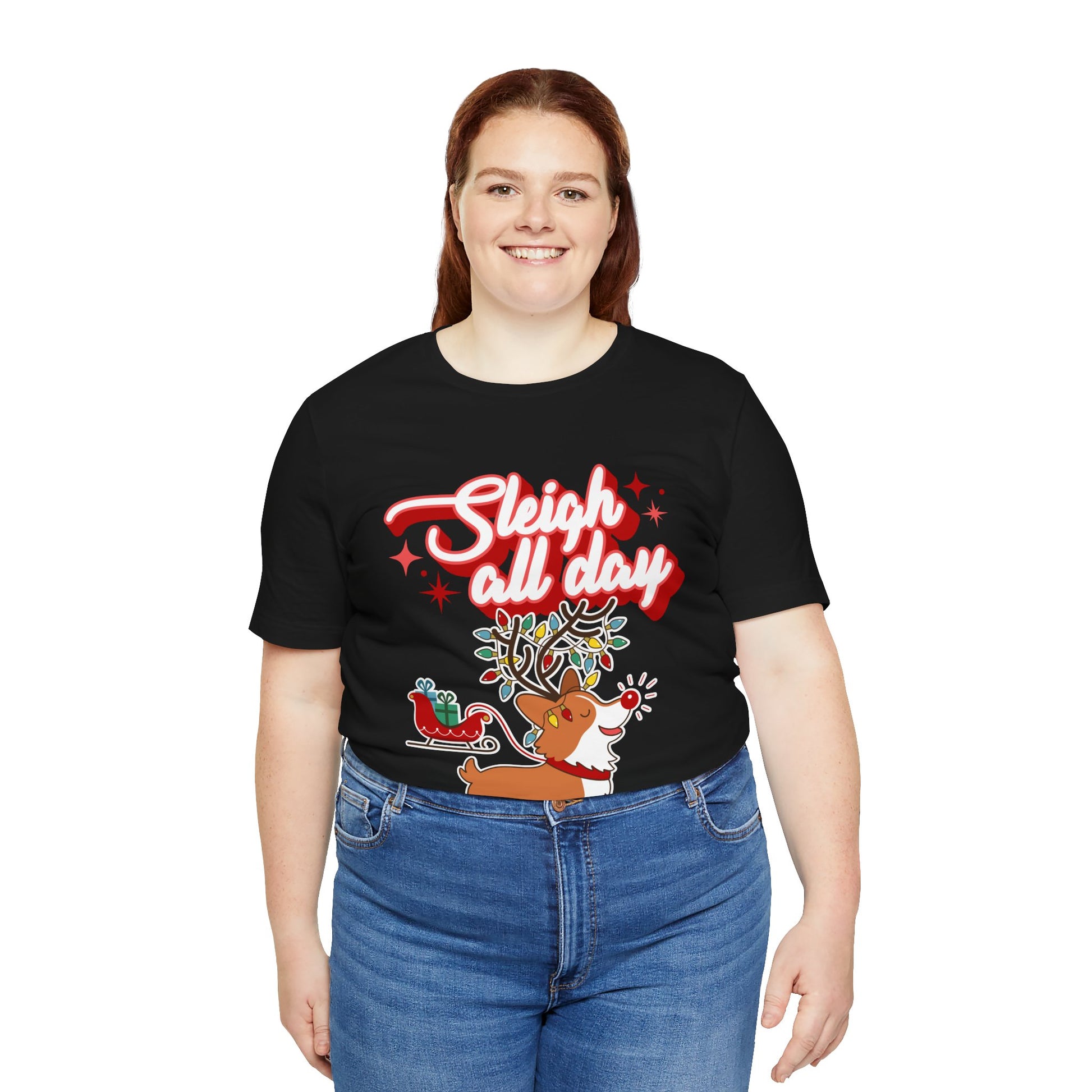 "Sleigh All Day " Corgi Christmas T-Shirt